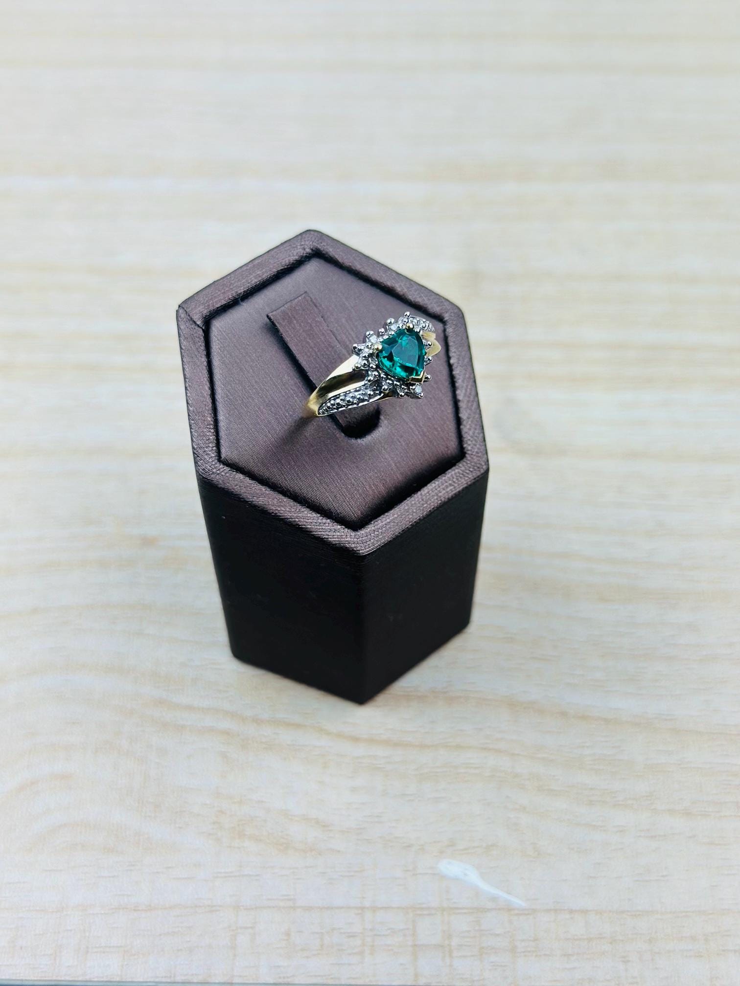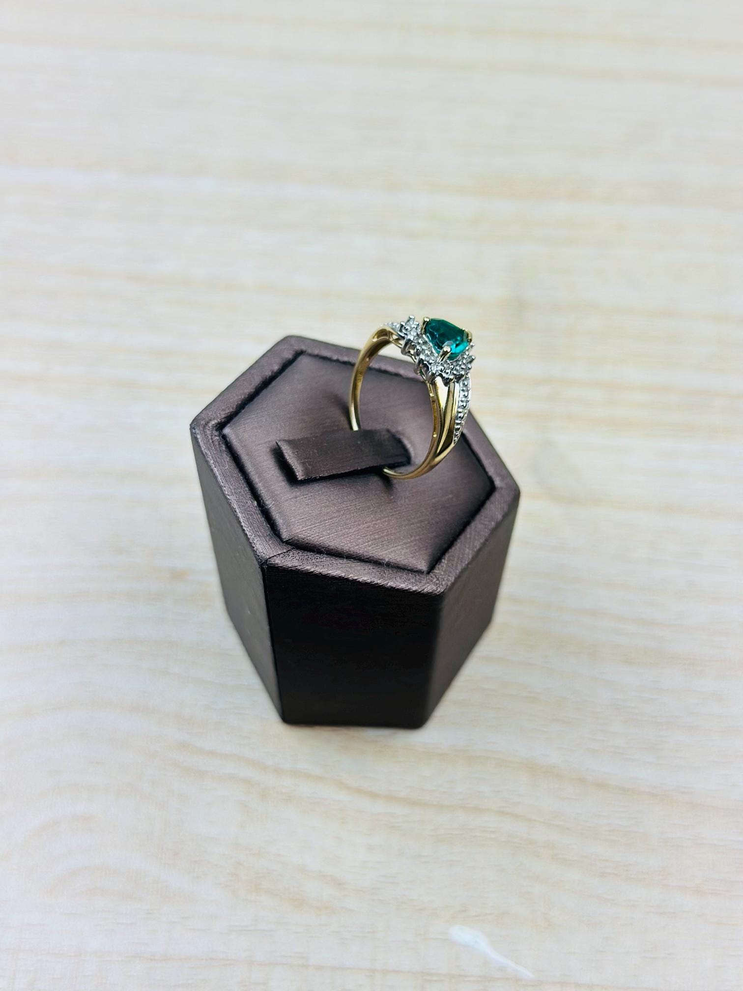 This exquisite vintage teal tourmaline ring is a true gem for collectors and jewelry enthusiasts alike. Set in luxurious 9 carat gold, this stunning piece features a captivating teal tourmaline at its center, radiating vibrant hues that reflect light beautifully.