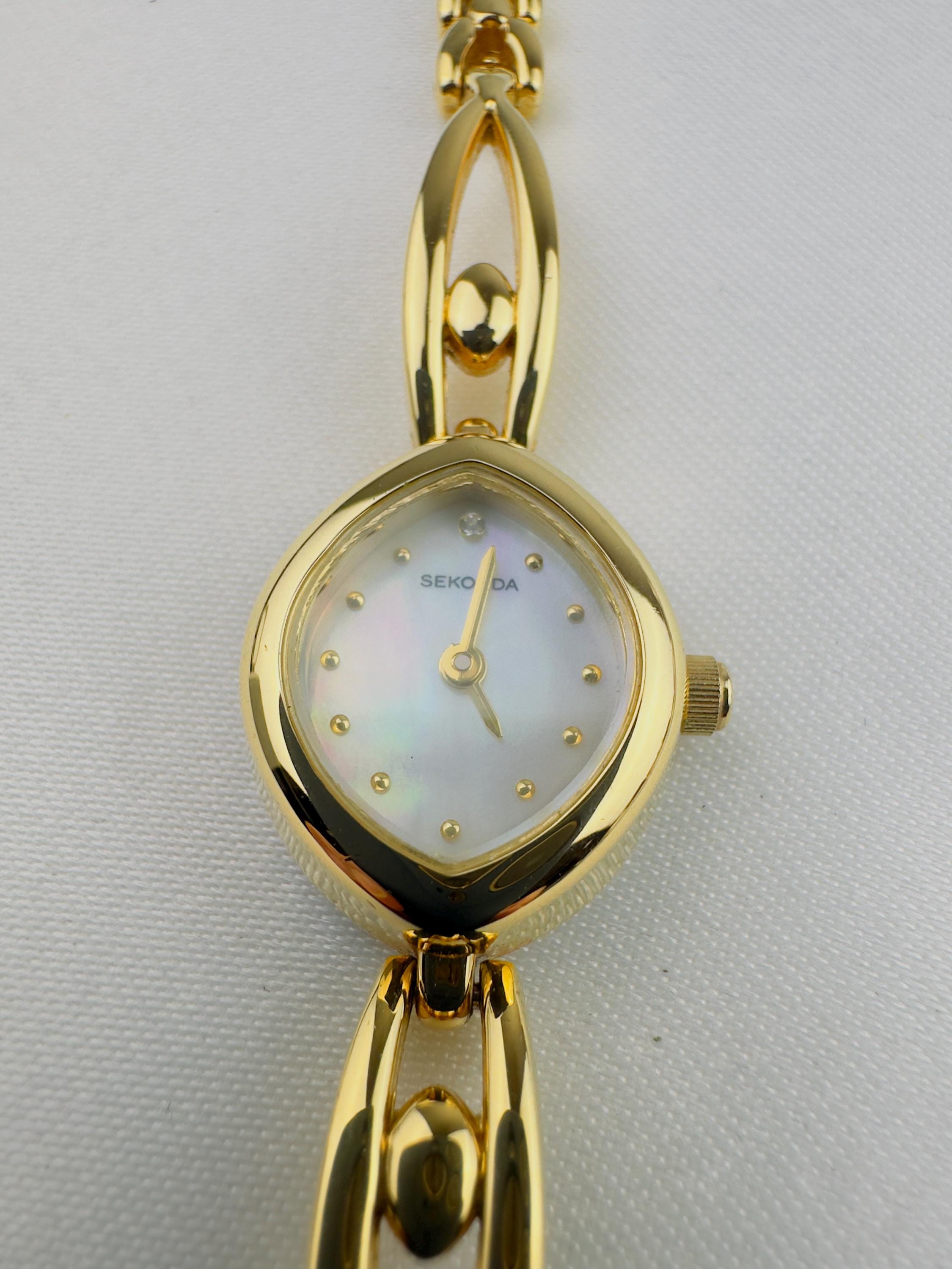Elevate your collection with this exquisite SEKONDA gold-plated watch, featuring a stunning mother of pearl dial and water resistant design. This vintage piece blends elegance and practicality, making it perfect for any occasion.