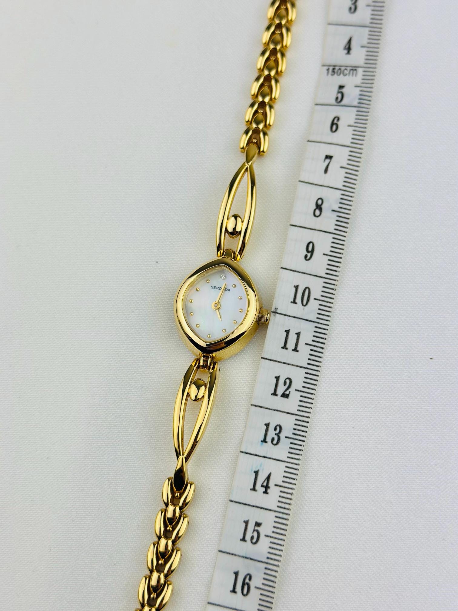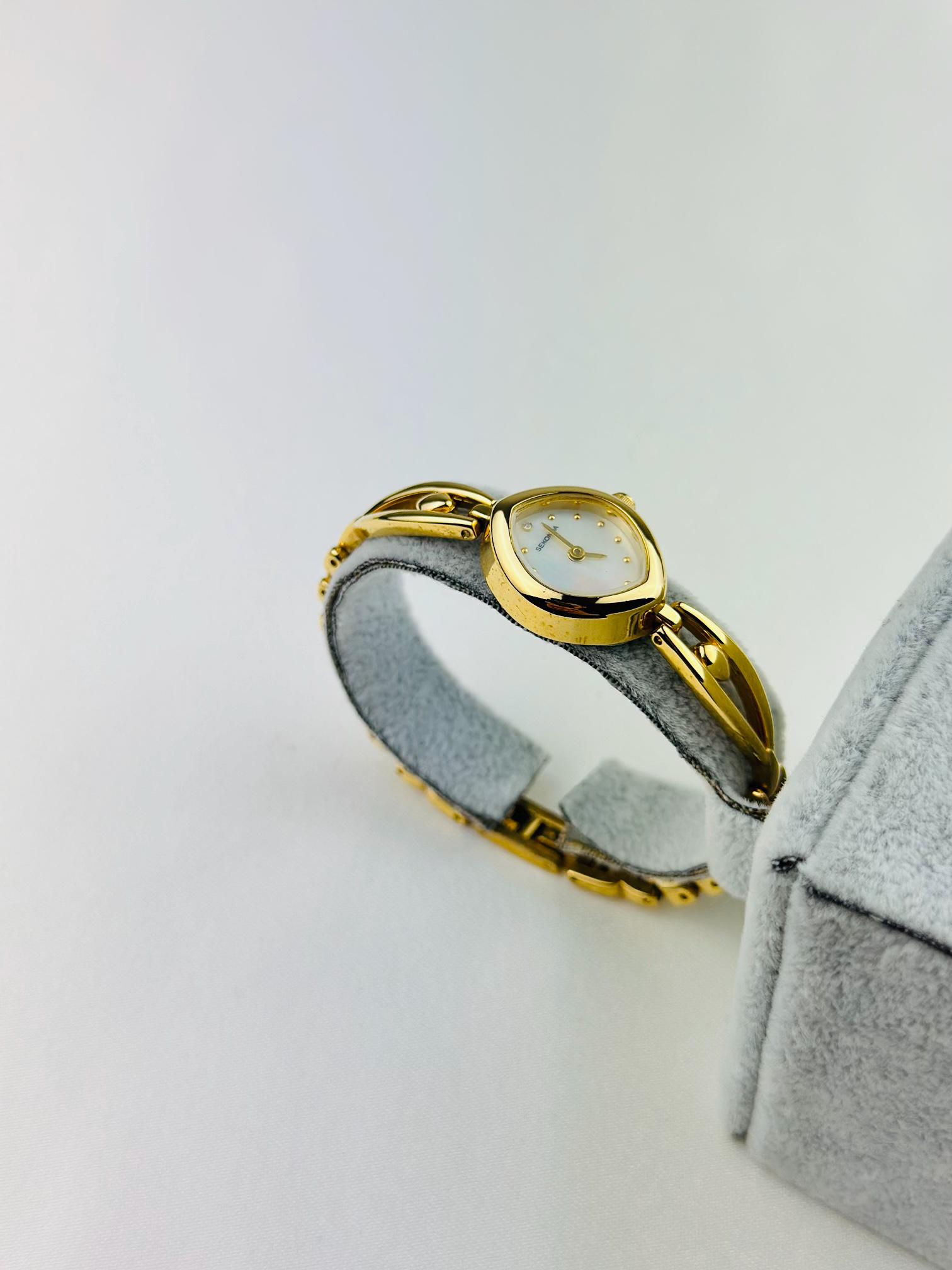 Material: Luxurious gold plating combined with a beautiful mother of pearl dial for a sophisticated look