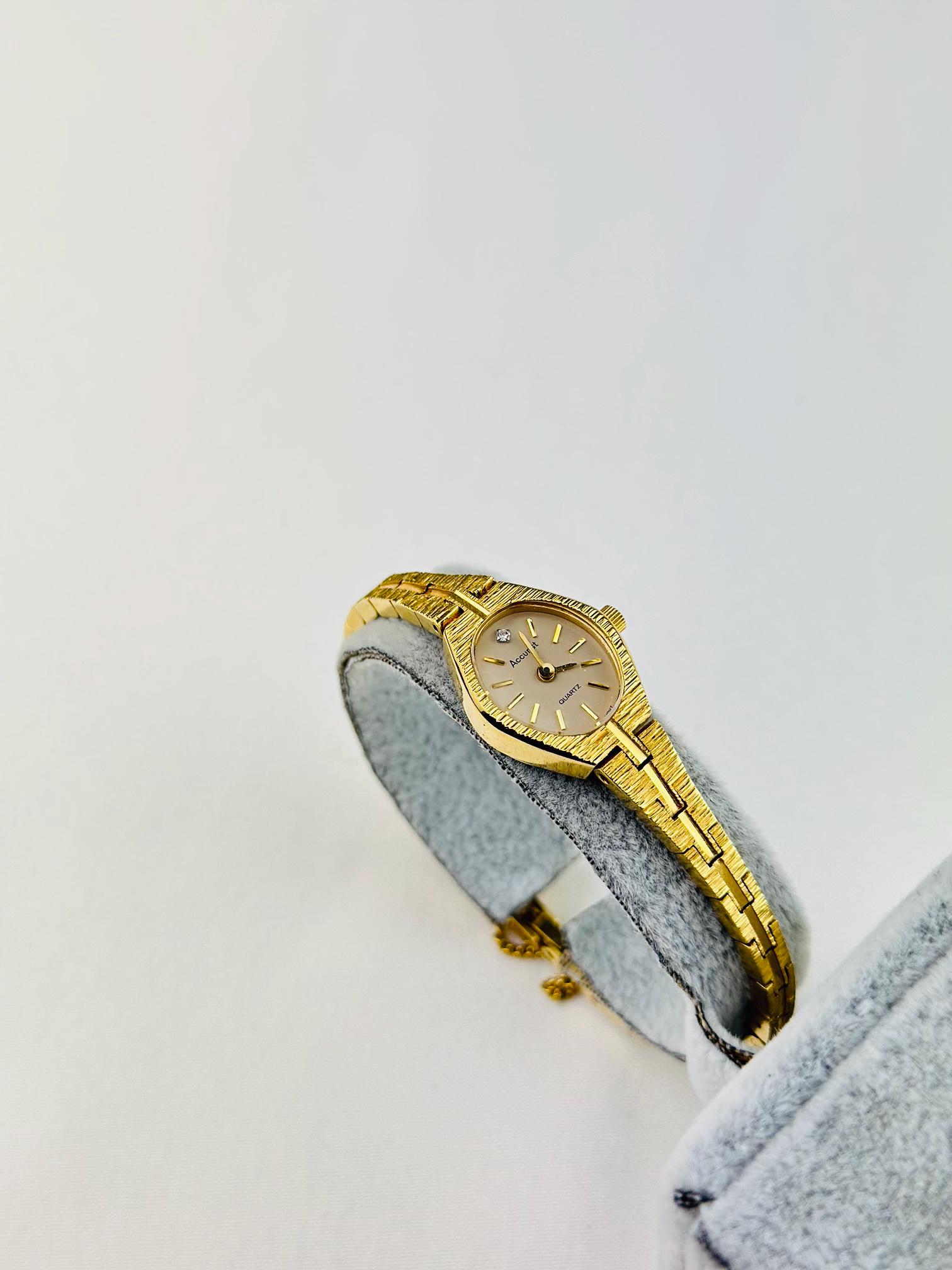 Discover the elegance of the 1980s with this classic Accurist vintage watch. This fully functional timepiece features a gold plated stainless steel construction with a stunning champagne dial, perfect for anyone seeking a touch of retro charm.