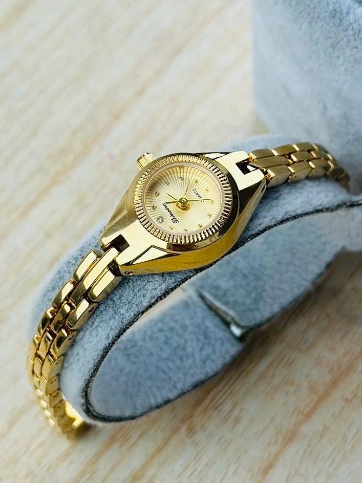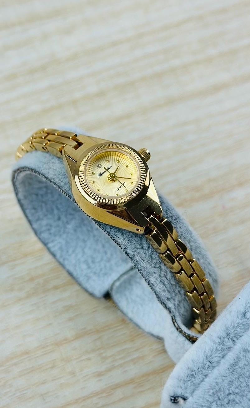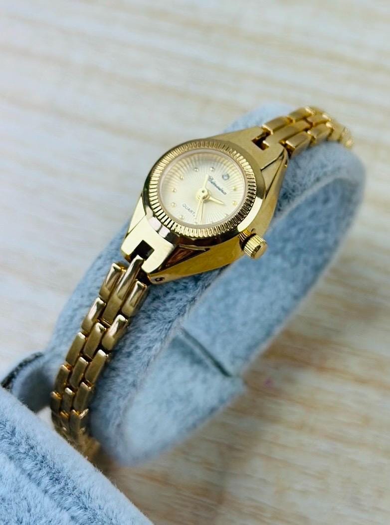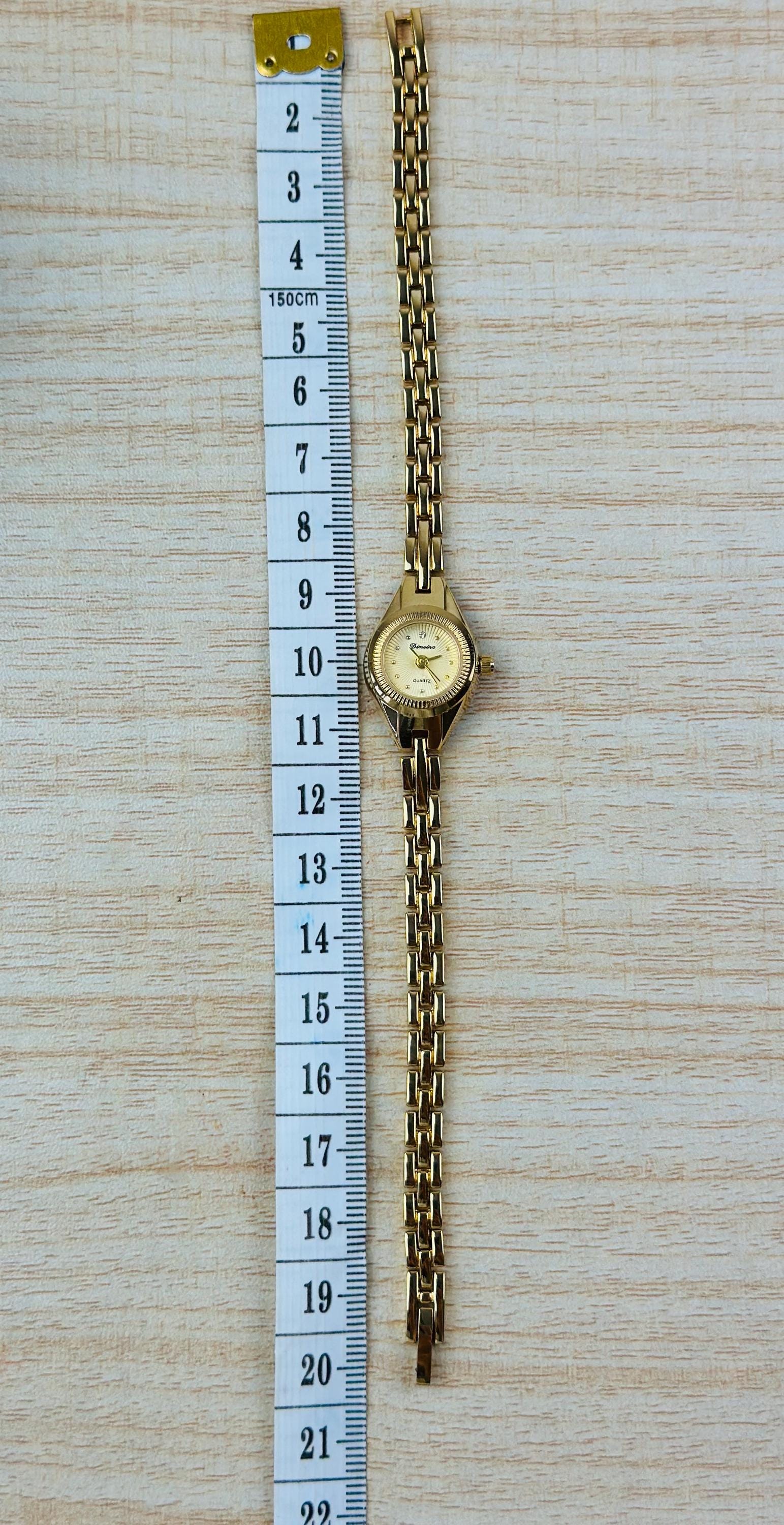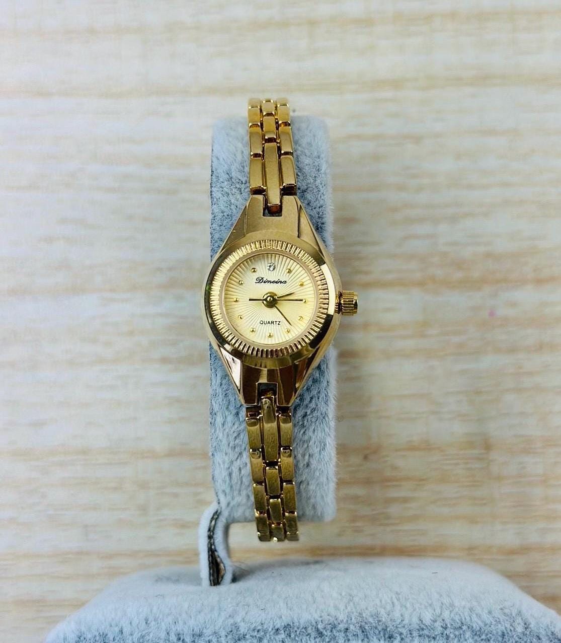 Vintage inspired ladies gold tone watch , quartz movement with new battery fitted , Watch is elegant and water resistant, Swiss made quartz movement, can be resized to your desired size and packaged as a gift .