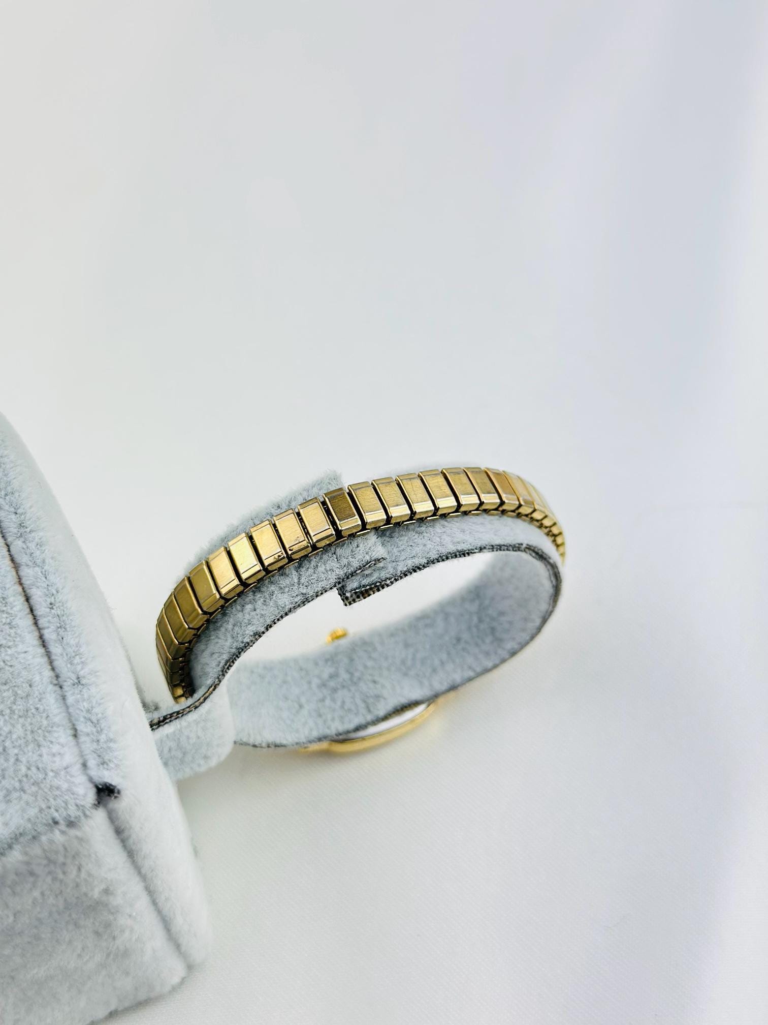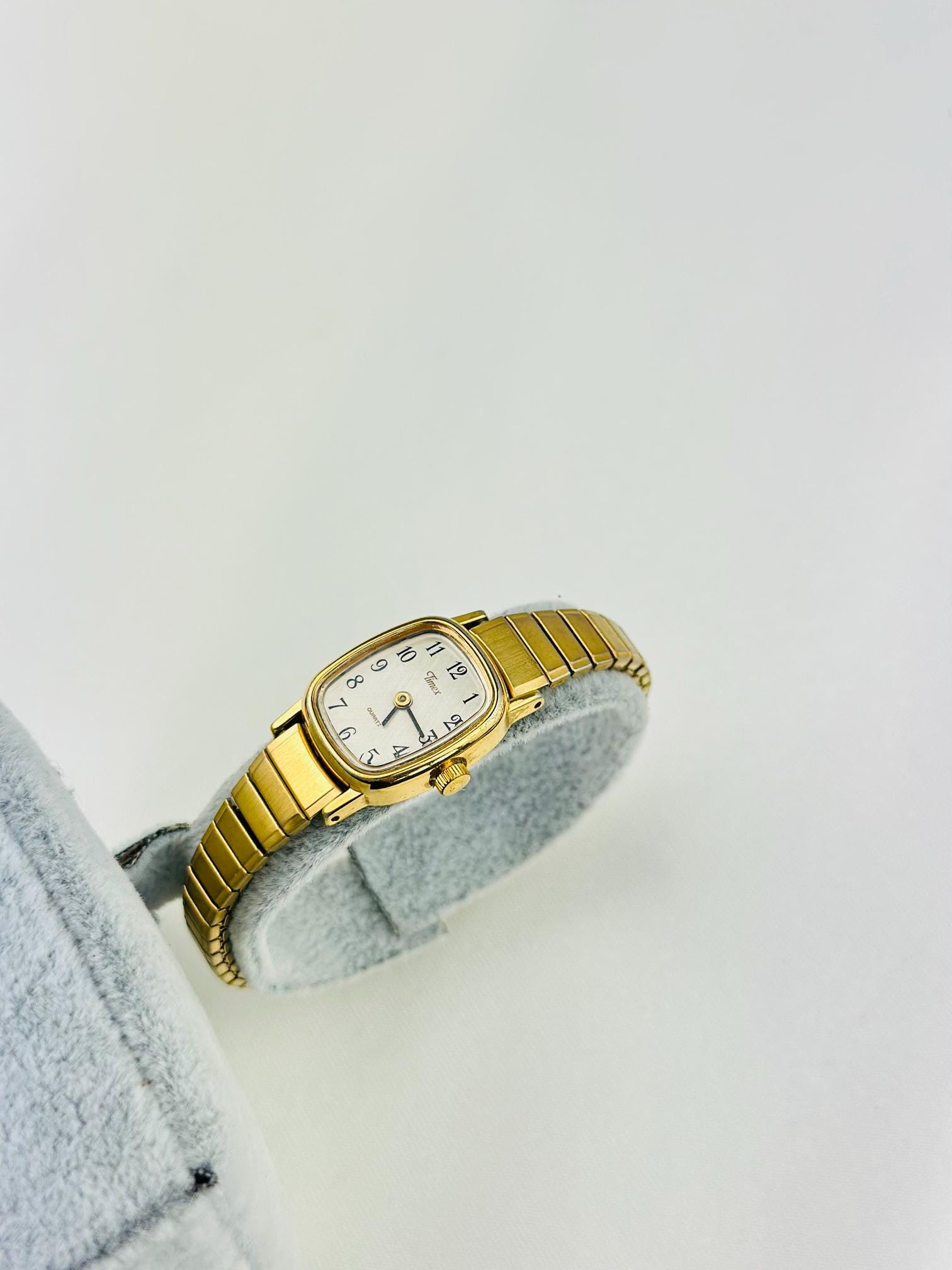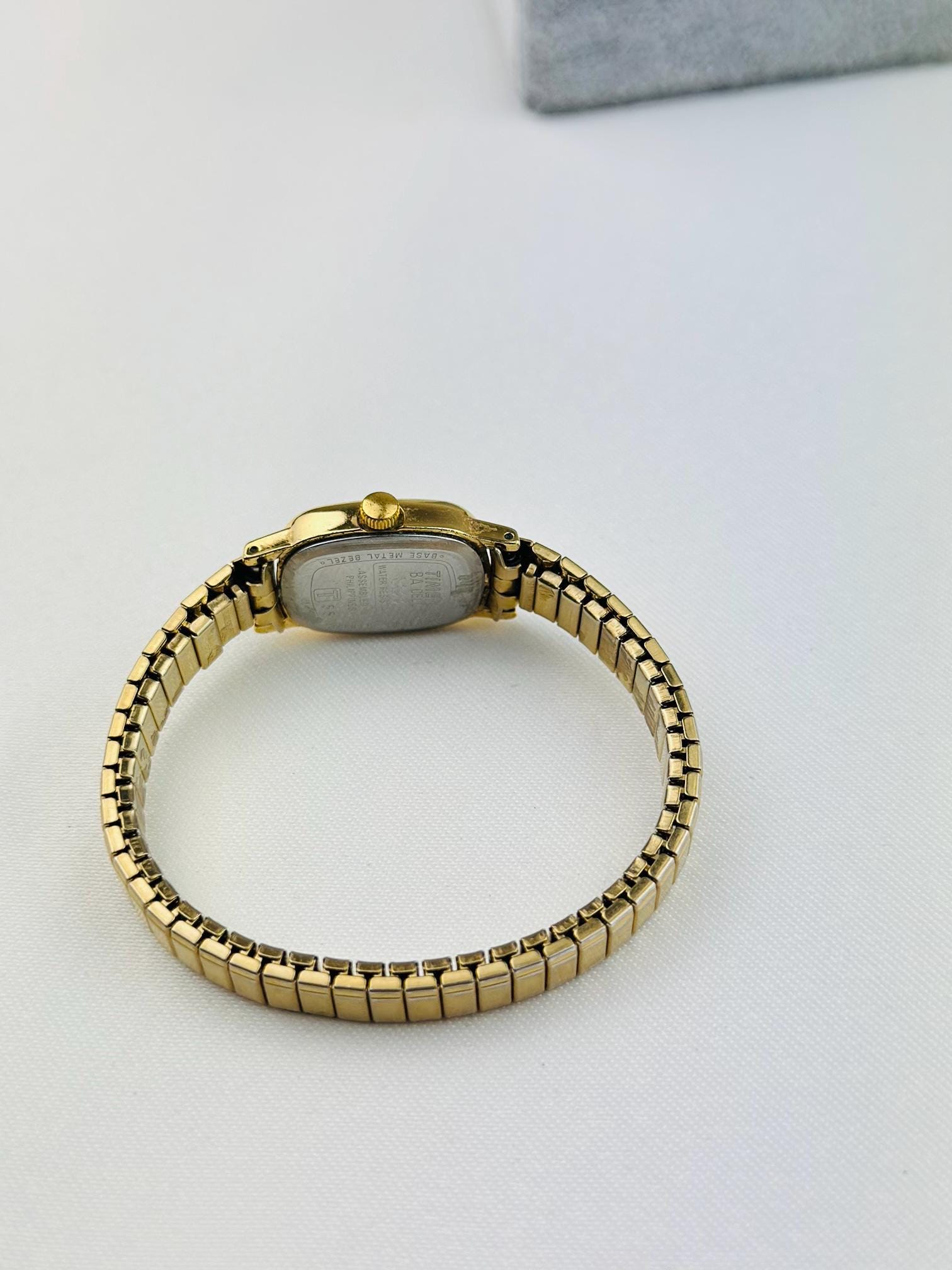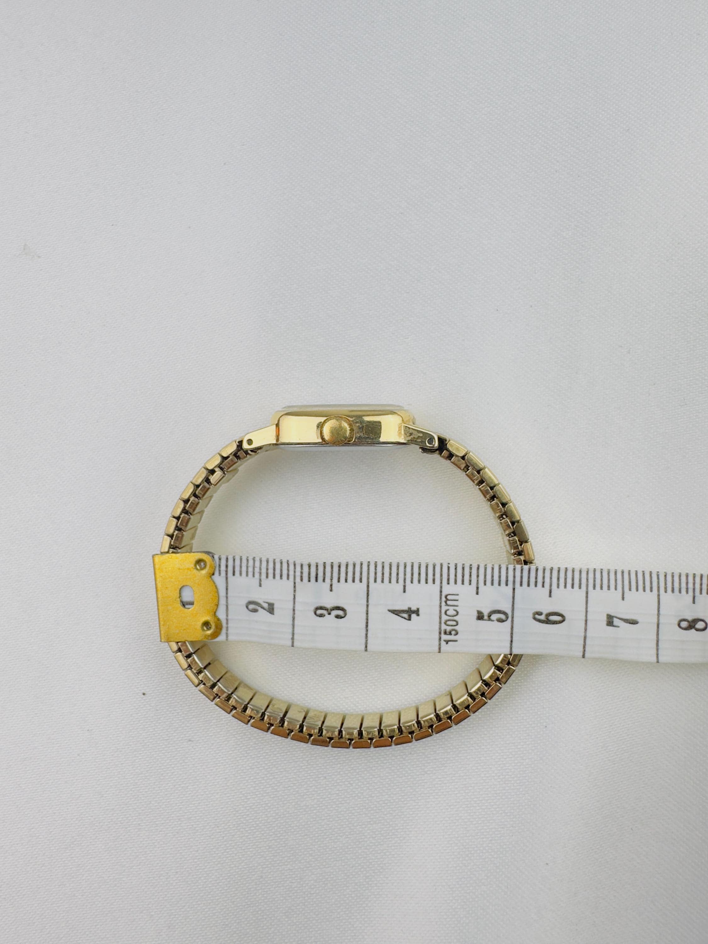 Vintage gold Timex watch stainless steel new battery fitted quartz movement, this is elegant stretchy bracelet watch , can be resized to a different band , water resistant tiny vintage elegant watch . Do not forget to add to your collection ,