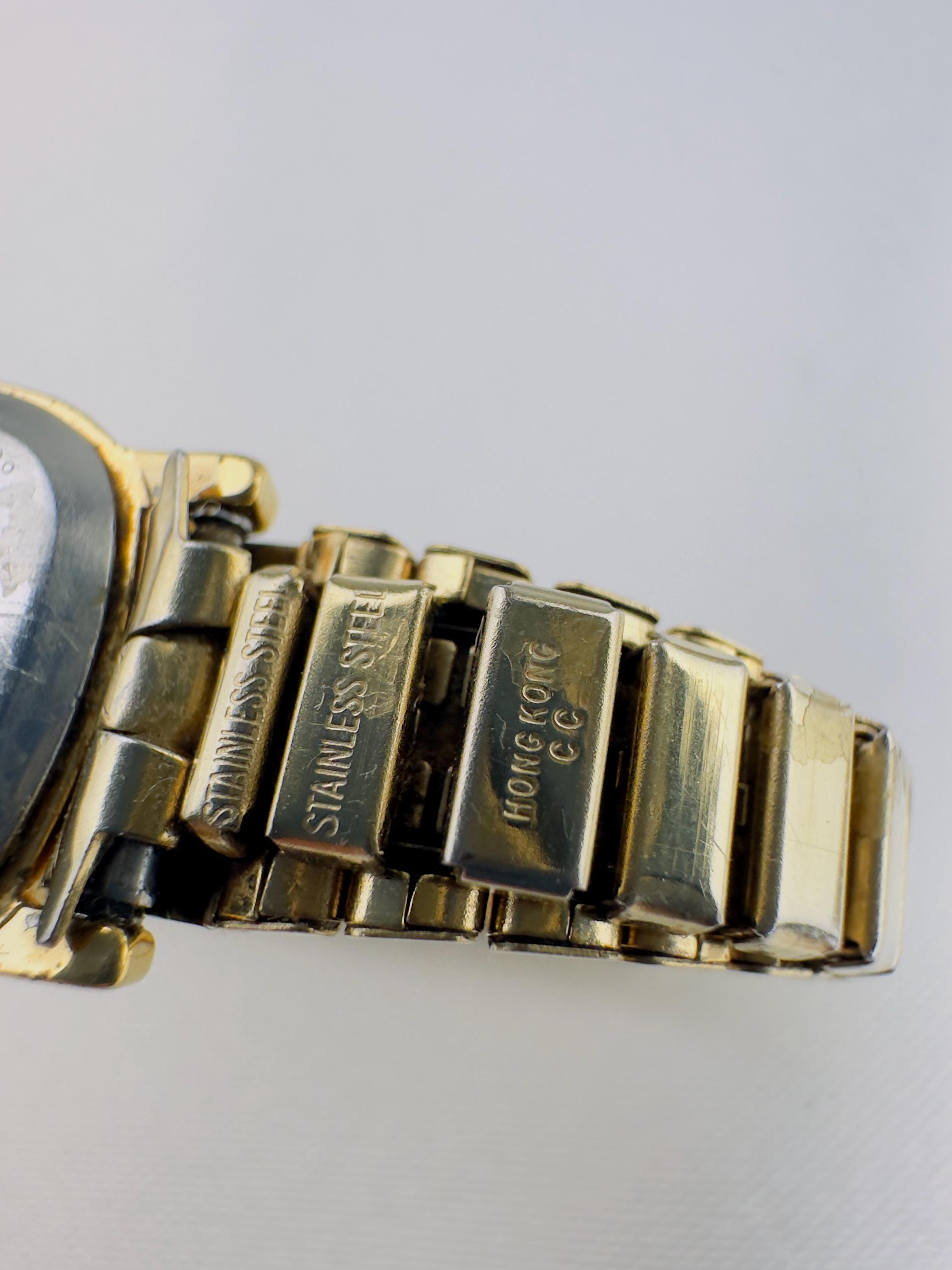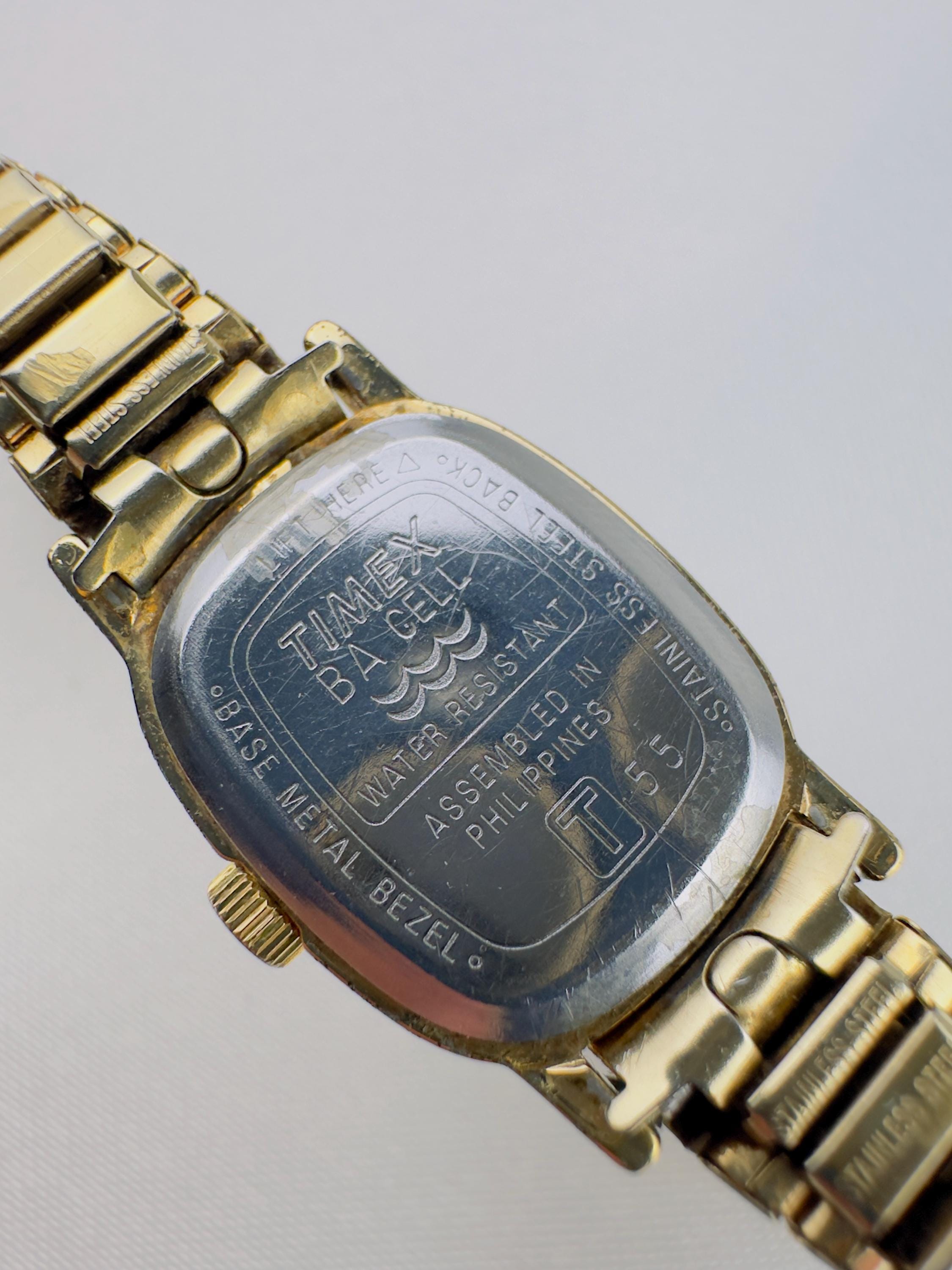 Vintage Gold Tone Timex Bracelet Watch, Stainless Steel, New Battery Fitted