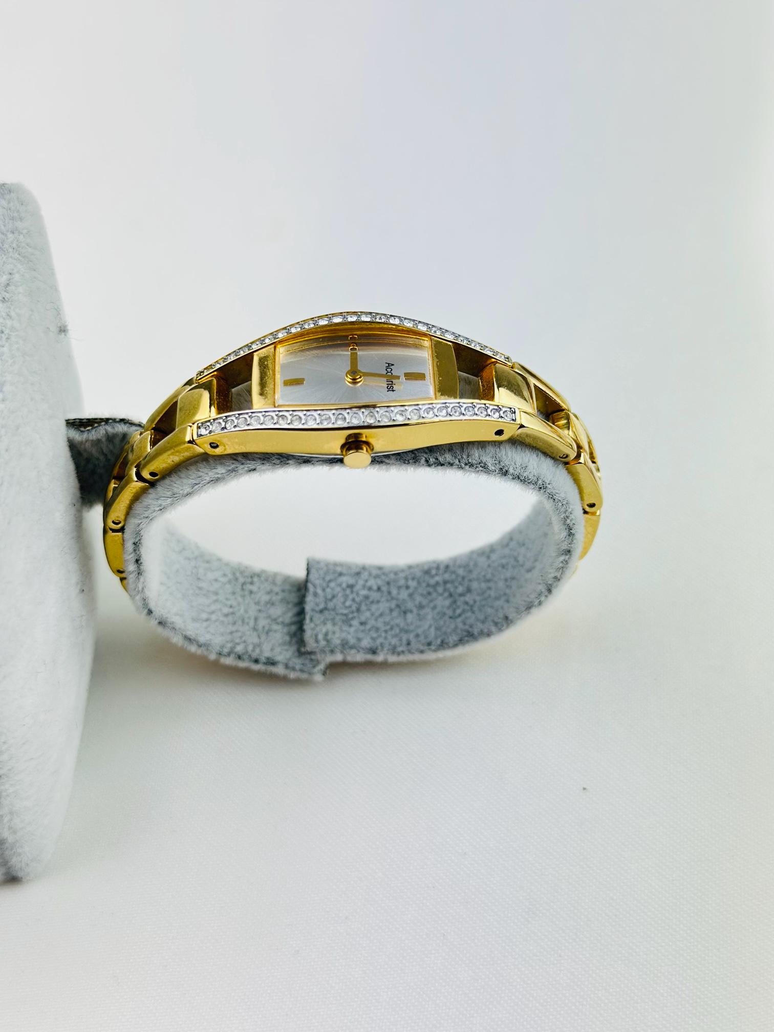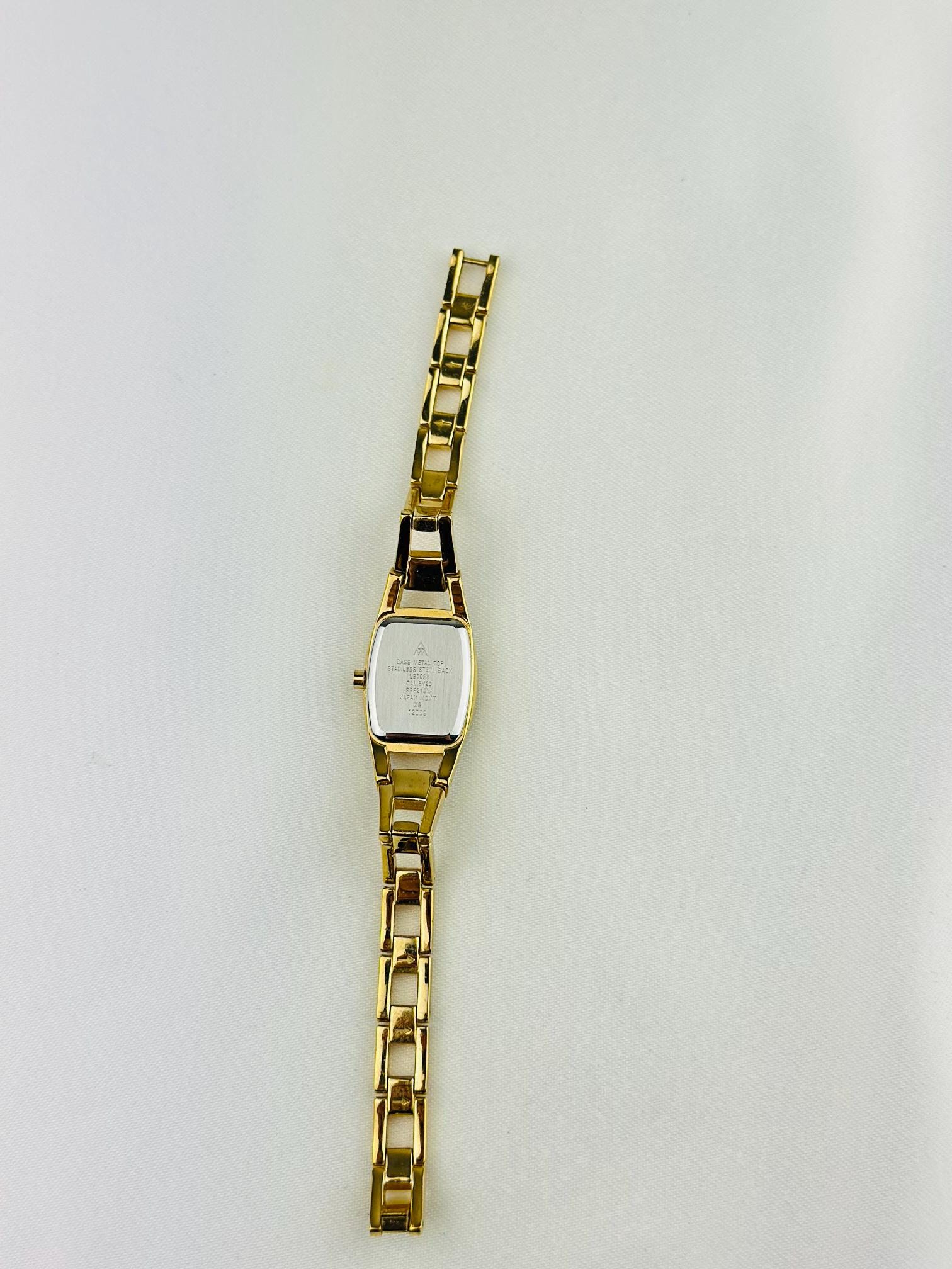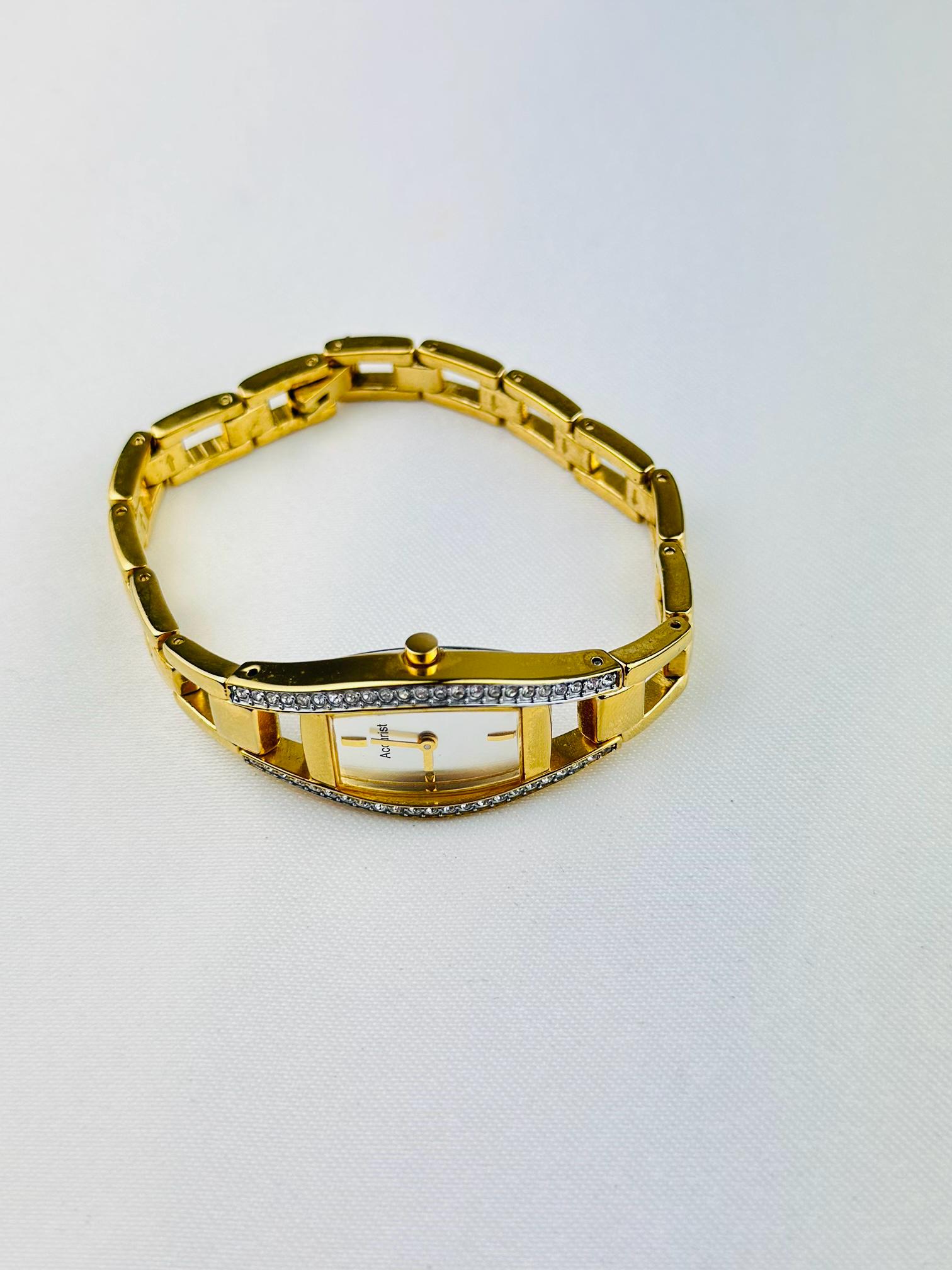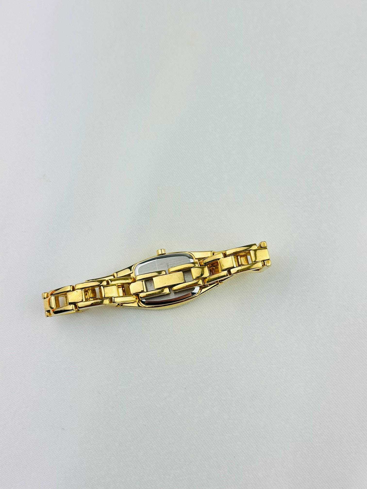 Beautiful vintage gold plated stainless steel watch , featuring small cz stones with a new battery fitted , water resistant gold tone watch, elegant watch tasted and gift packaging available.
