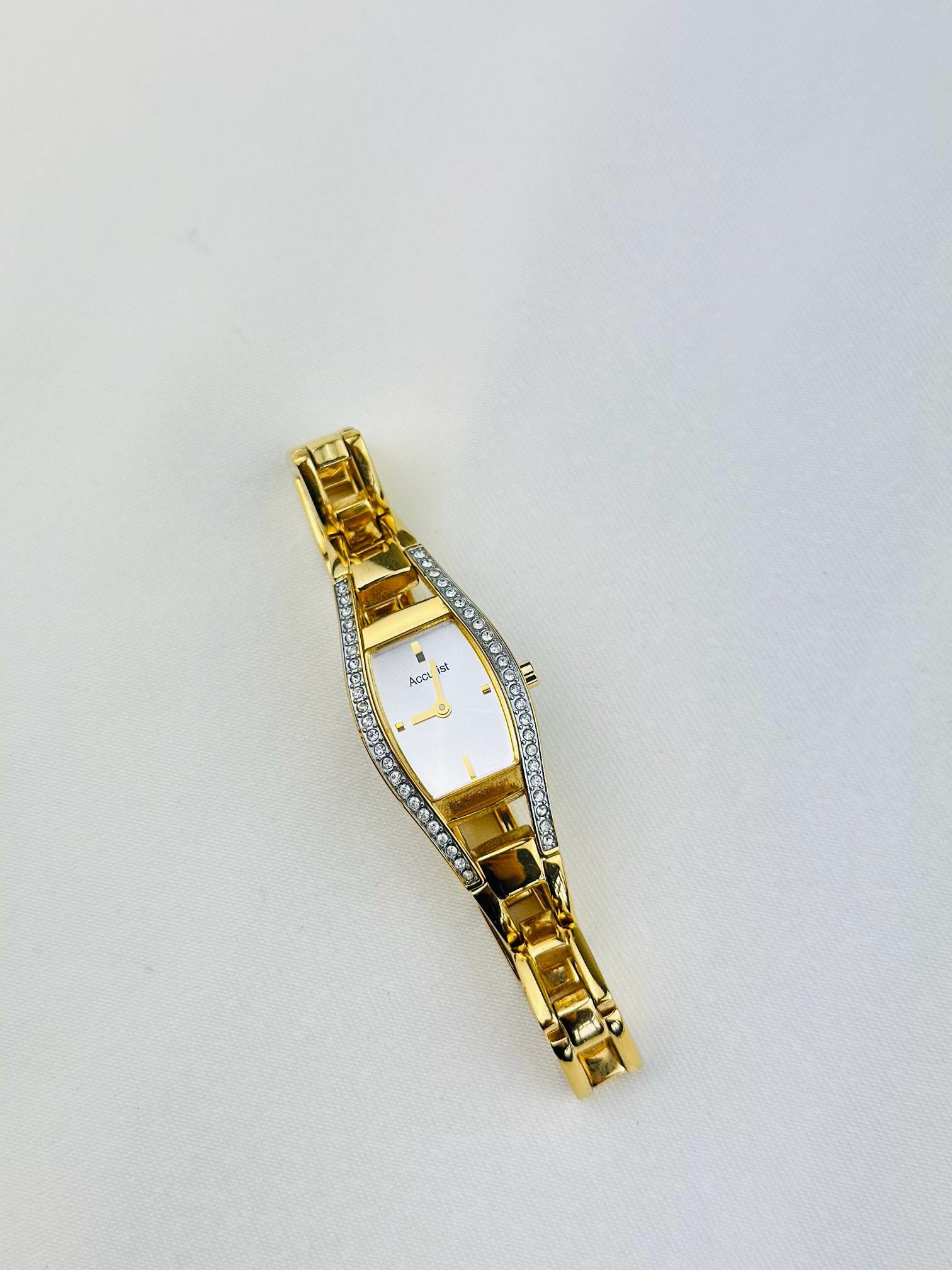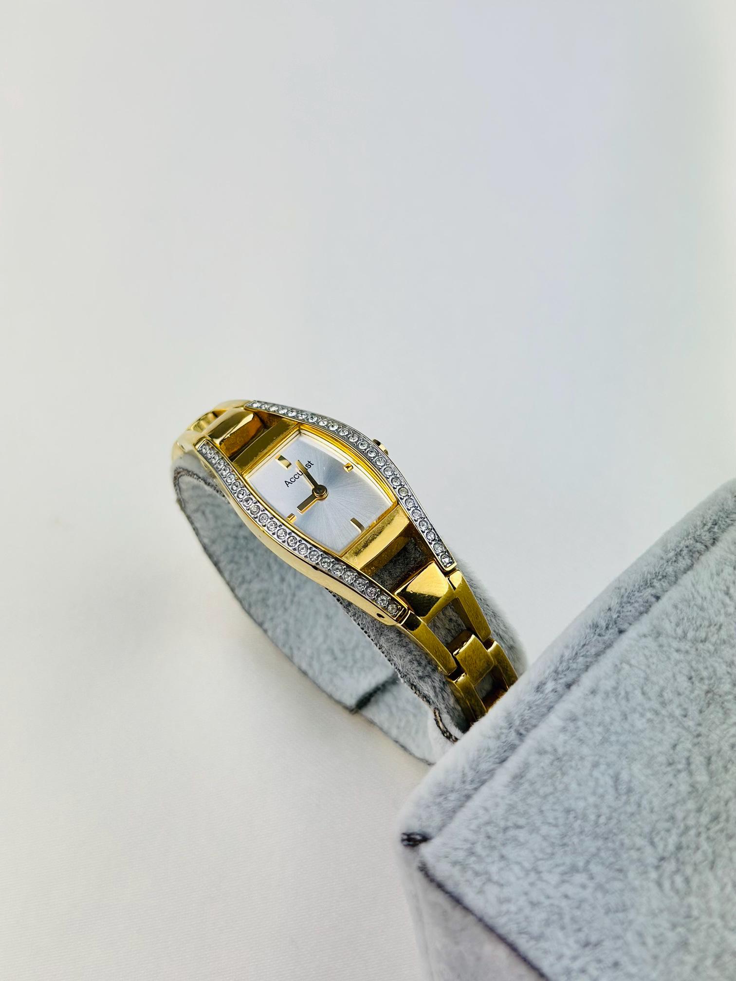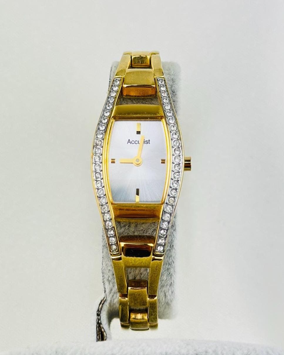 Beautiful vintage gold plated stainless steel watch , featuring small cz stones with a new battery fitted , water resistant gold tone watch, elegant watch tasted and gift packaging available.