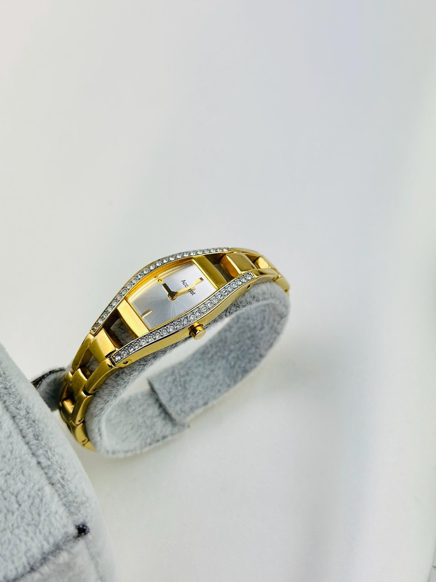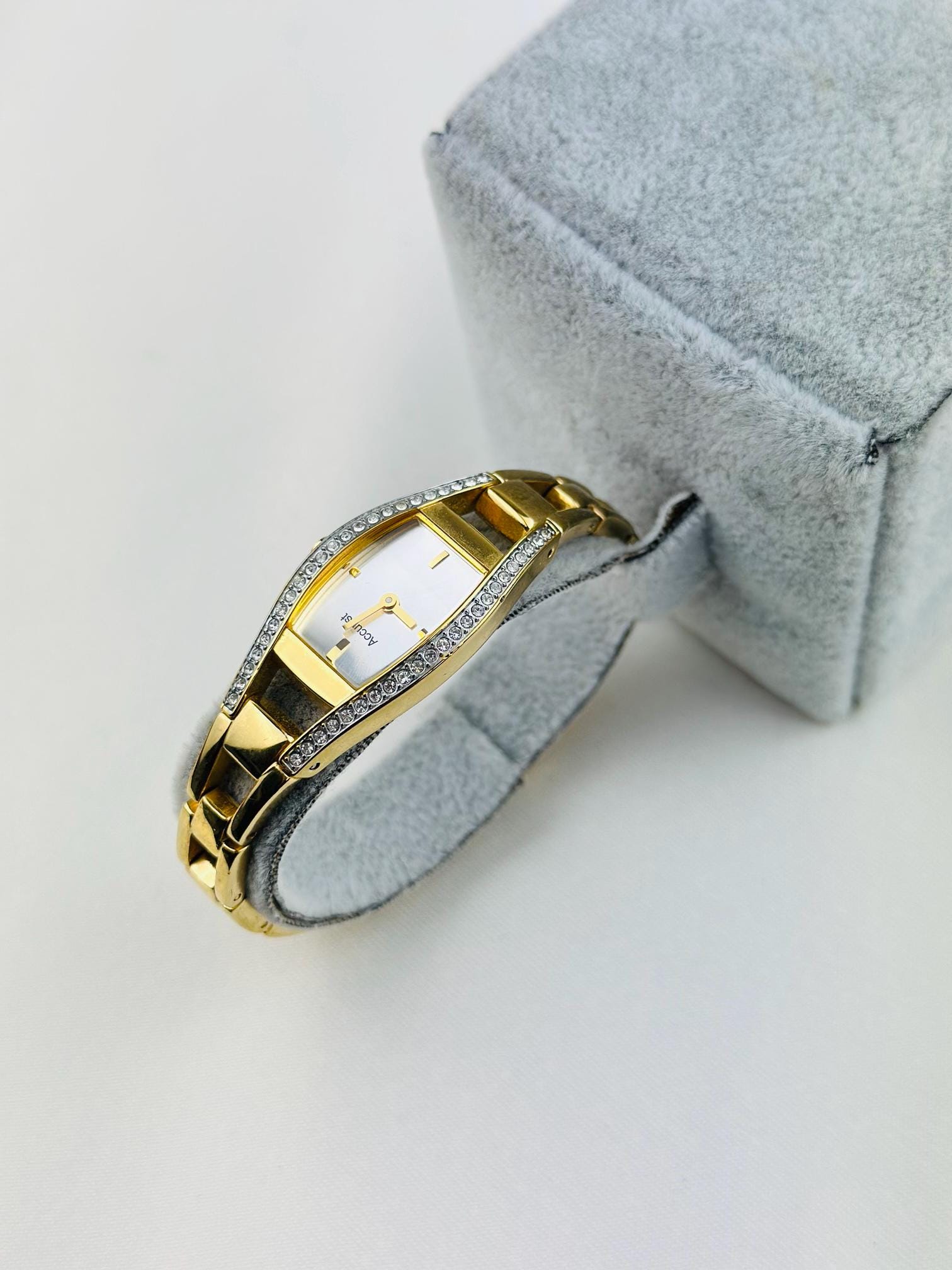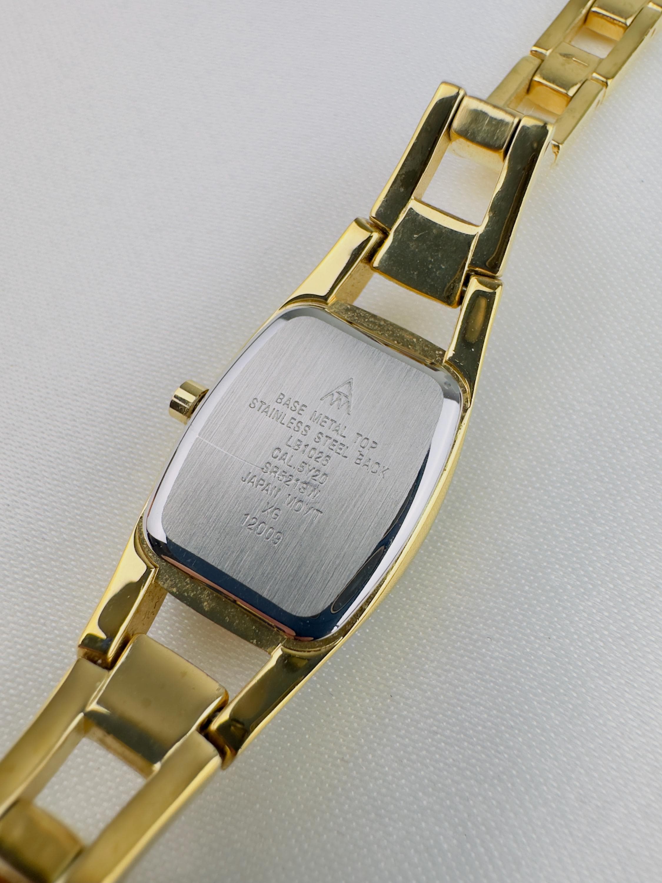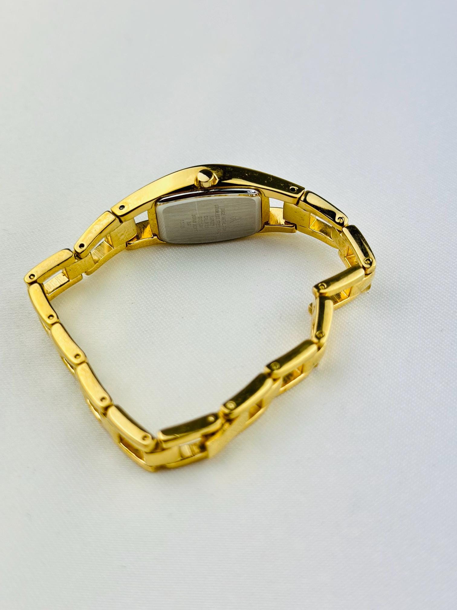 Beautiful vintage gold plated stainless steel watch , featuring small cz stones with a new battery fitted , water resistant gold tone watch, elegant watch tasted and gift packaging available.